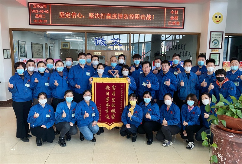 實習生袁俊秀為公司贈送錦旗 “感恩于五環,家一般溫暖”